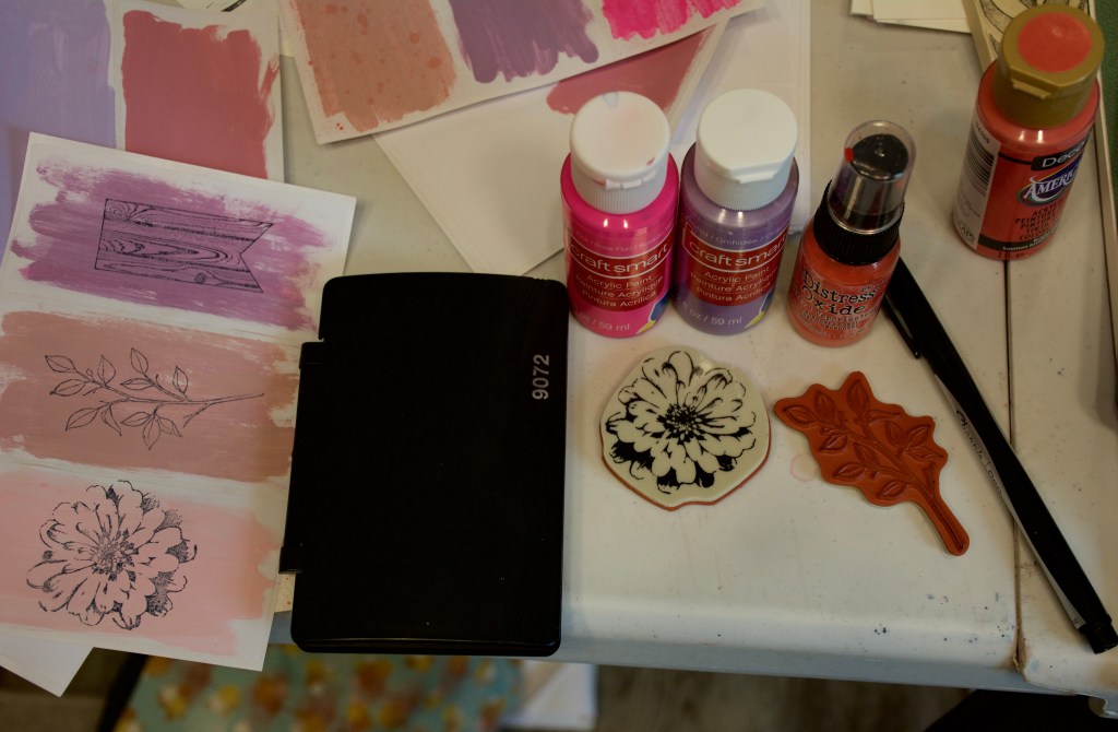 Another fun thing I’ve been trying again lately is carving my own stamps with linocut. So you can choose any design you like, carve it into rubber, and then have your own personalized, one of a kind stamp to stamp on your new stickers.