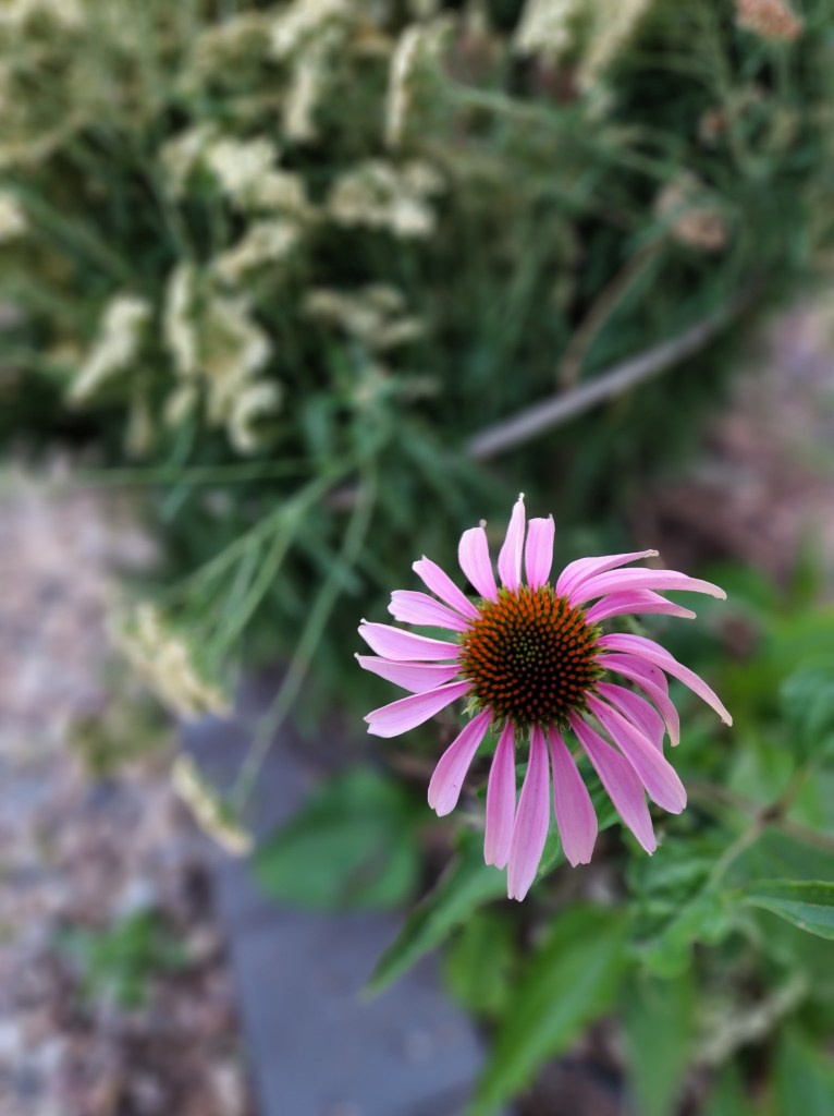 I recently realized that if you are photographing flowers in your garden in portrait mode, you can get some really ethereal effects. I understand that this is probably old news, but in case you haven’t tried it, I highly recommend it. It works best when taking photos of clusters of flowers, because you get that wonderful depth of field. The flowers in the first photo are orange yarrow; the colour has really faded since they first bloomed.
