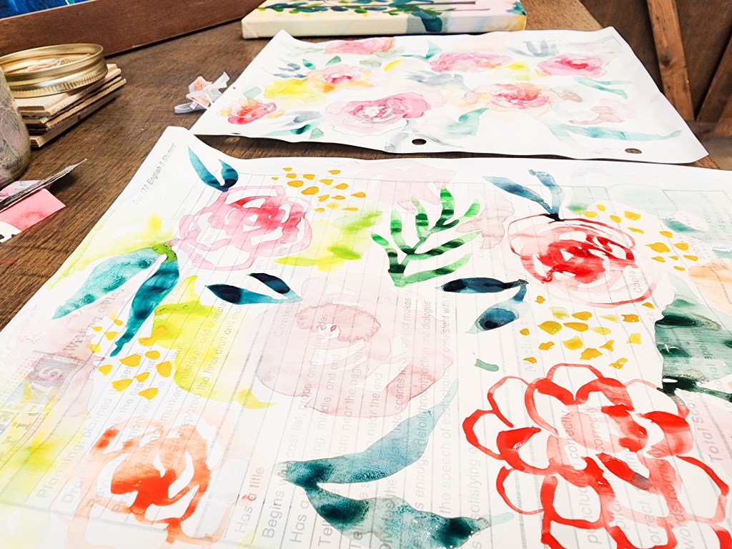 I have also been working on a few watercolor floral patterns to add to the shop, some of them are pictured above. I am really excited about these, and I would love for you to check them out! I’ll make a note here when I get them in the shop. I have already printed a few for my own stash, and have been tearing them up to use as pages in my mini art journals. The pop of color is a really pretty addition.