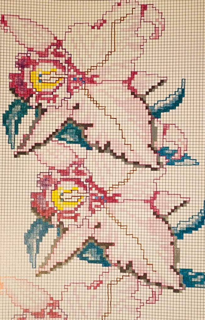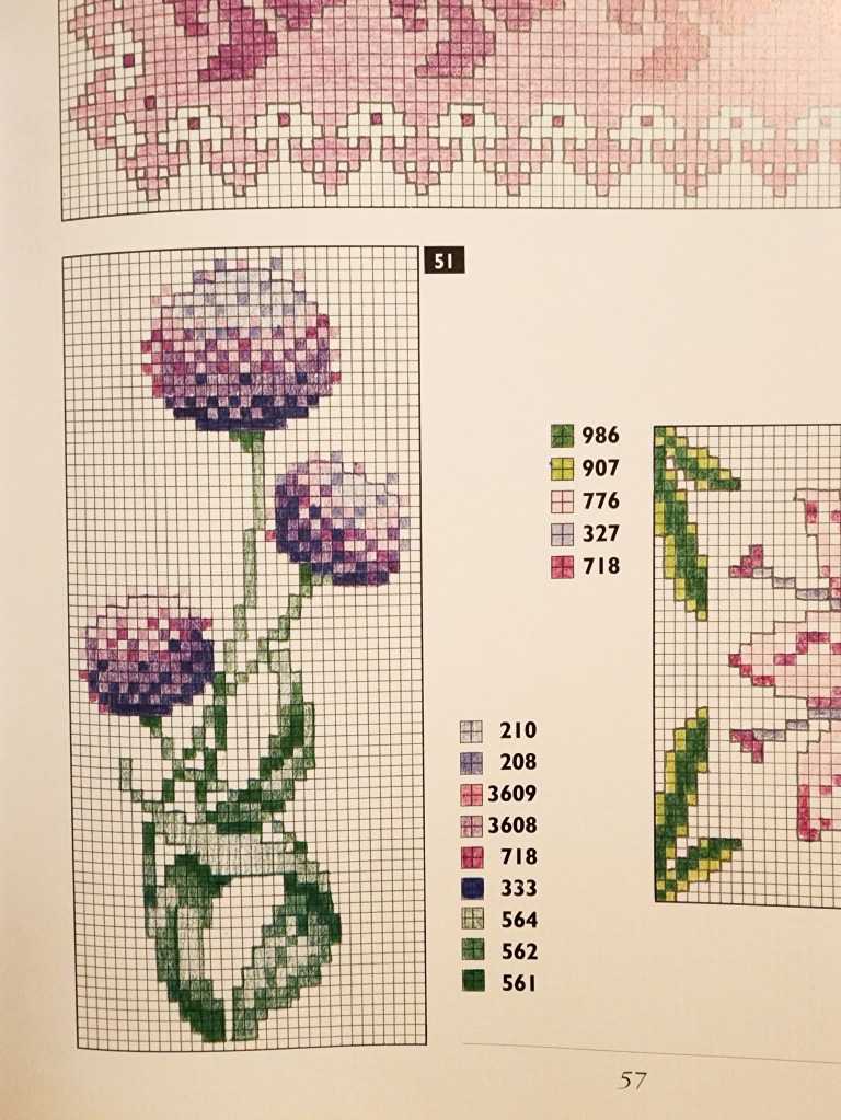 And a quick update about inspiration. I think my inspiration has come almost solely from books lately. I found some really beautiful books at the thrift store and they have been sparking all kinds of creative ideas. One of my favorites is a DMC cross stitch book from 1993 (I think), which has surprisingly modern designs in it, considering its age. I am loving the cross stitch patterns, how geometric and colorful they are, and wondering how I can incorporate that into future work. It may even be fun to color in my own pattern on some graph paper to use in a collage or art journal.