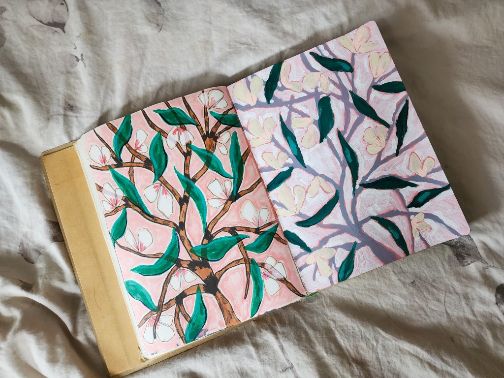 Later when I was wanting to paint something on canvas, I decided to use the second version of the book page art as inspiration again. The painting didn’t come out quite how I was envisioning, so I set it near my bed and stared at it over a period of time until I was inspired to work on it again. It’s still not exactly where I want it, and so I decided to take to an art journal to try some more variations there to see if I can eventually arrive at what I had initially intentioned. All in all, it was a bit of an accidental venture into series work, but I like the idea of not ‘reinventing the wheel’ as Helen says, and just using one idea until you feel you’ve accomplished what you hoped to. And in the meantime, who knows what you could discover! I have had so many limiting ideas about art in my mind, I have no idea where I picked them all up, but I really feel like the biggest thing that God has done for my art is changing my mind. It changes everything!