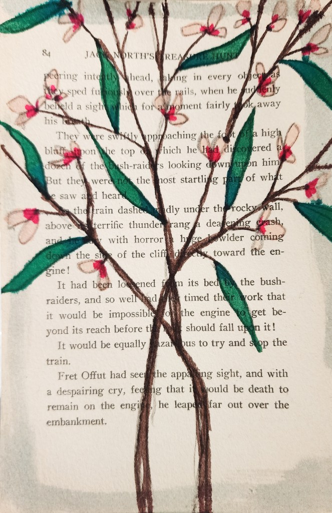 I often sit and work on some art in the evening. It is often random and unrelated to anything else.. just whatever I feel inspired by in the moment. Doing a series is a way to try and focus and narrow in on an idea. I have a bunch of old book pages leftover from making art journals and honestly this first series was birthed accidentally when I was doodling on these one evening. I was looking at some botanical art and made a quick sketch which looked nothing like the inspiration photo, but I liked it, so I decided to try making it again, but in a way that would fill the paper.