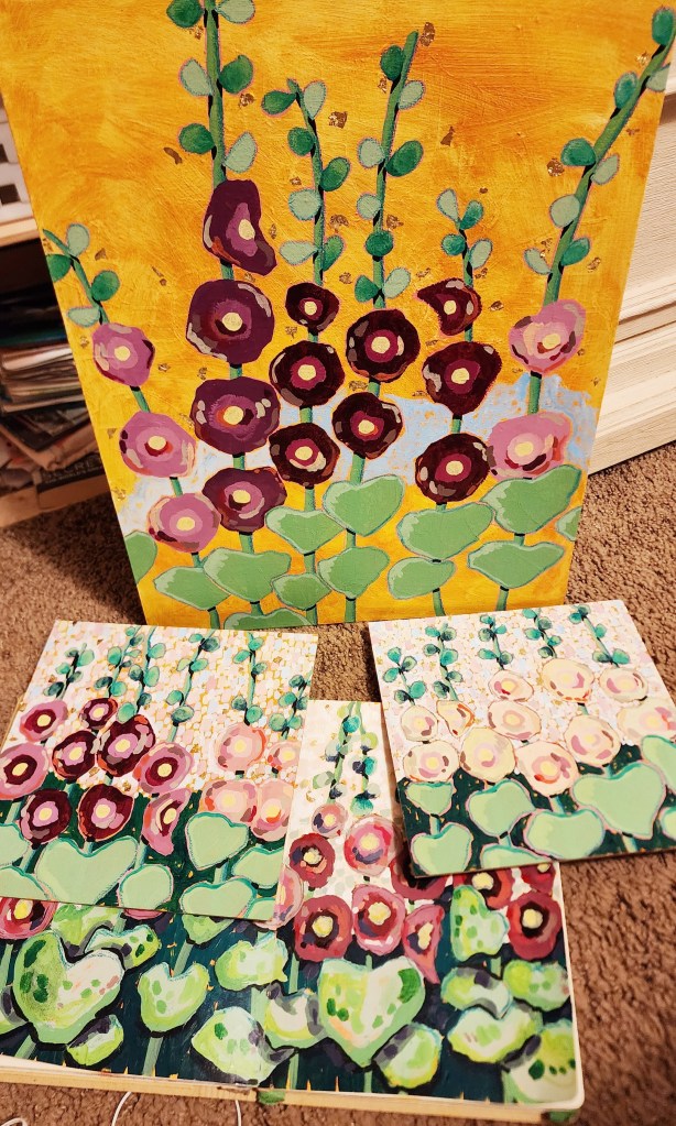I didn’t have anything in mind when I sat down to reconnect here tonight, but I guess there’s always something to share. I’m still working away on my painting series of hollyhocks. So far there are 7 paintings. I was hoping to get to 30, we shall see how that goes! I keep starting more paintings when I get to the final detail stage. Procrastination! Lord, help me!